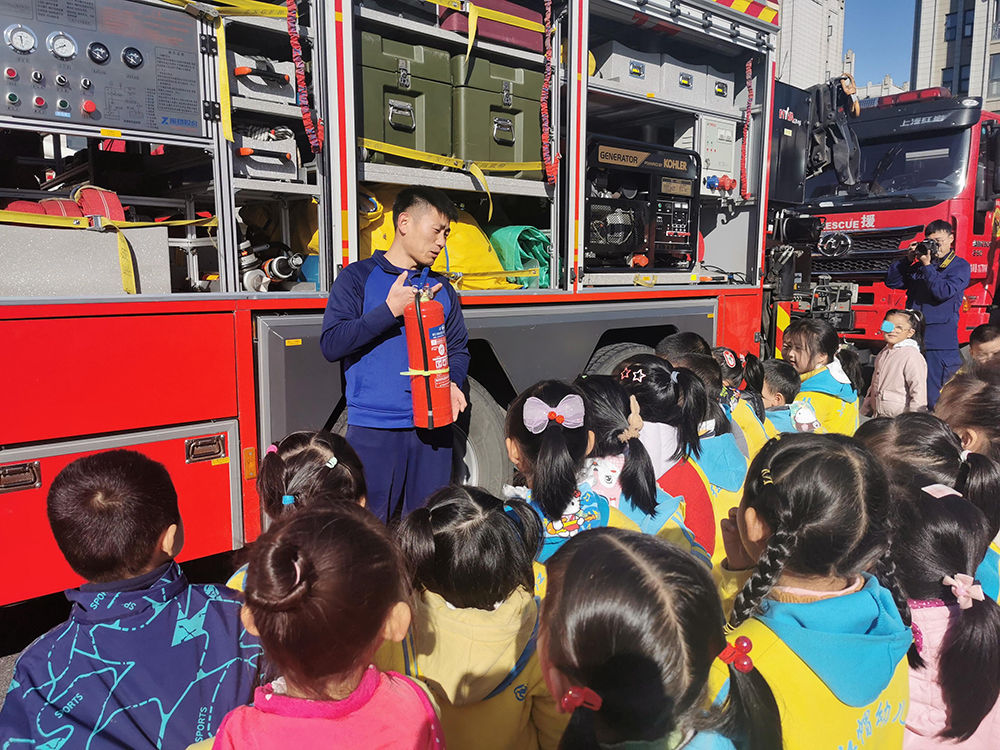 卢等等说,针对幼儿园小朋友的理解能力,他们尽量将消防安全知识说得生动有趣,同时增加互动性。“今天主要带他们参观了消防车、穿戴消防服和体验内务,引导他们从小养成对消防安全的重视。”卢等等说。